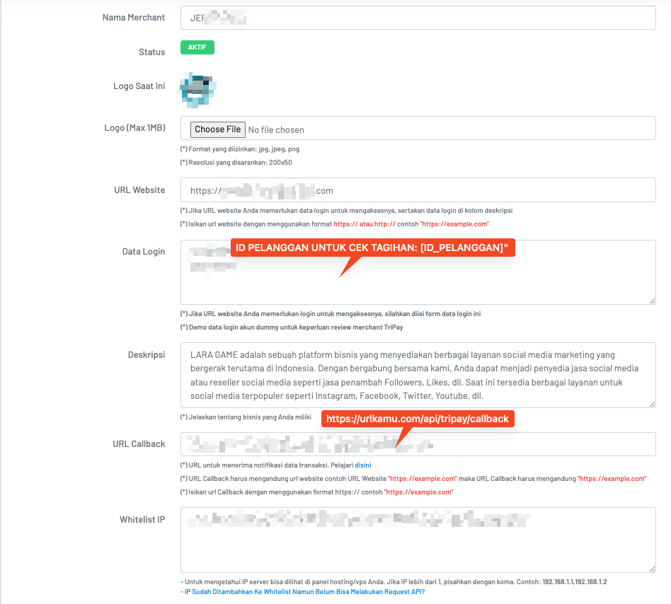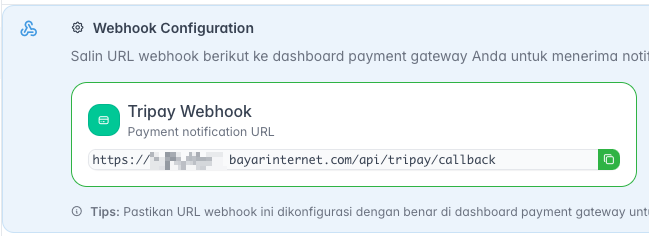 - Tempelkan URL tersebut ke kolom URL Callback di formulir merchant Tripay Anda.