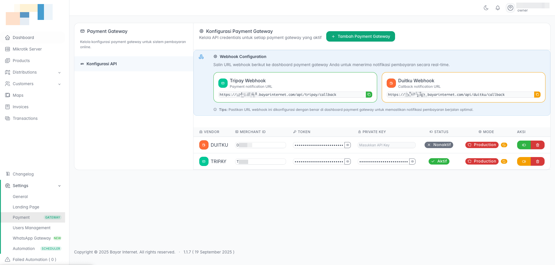 Dokumentasi ini memberikan panduan langkah demi langkah untuk mengintegrasikan payment gateway Tripay dengan aplikasi billing Anda.