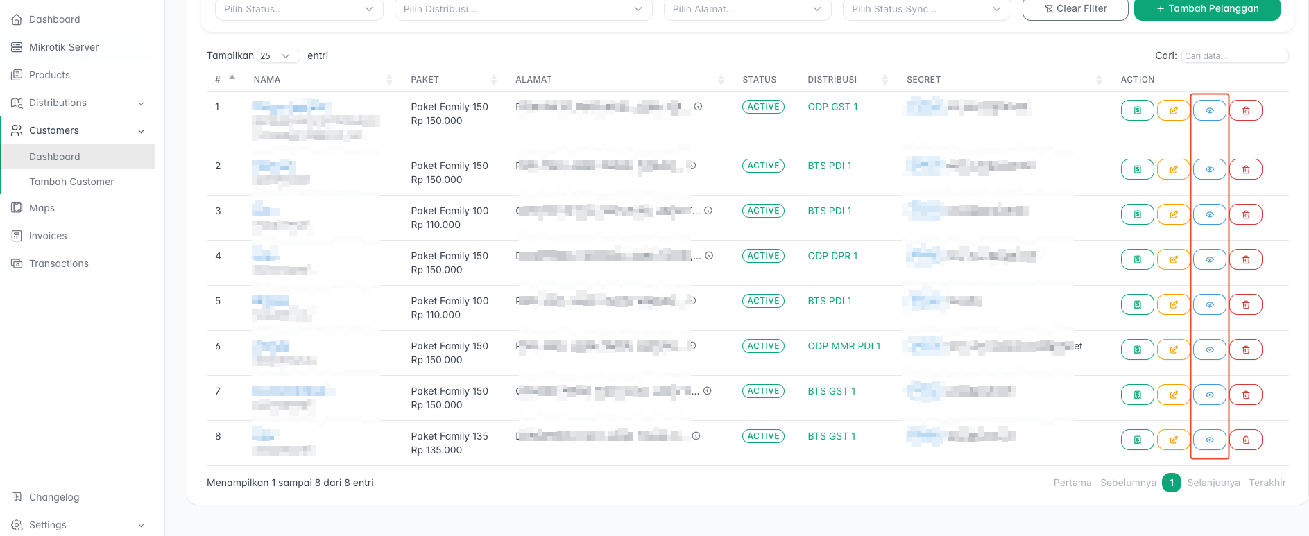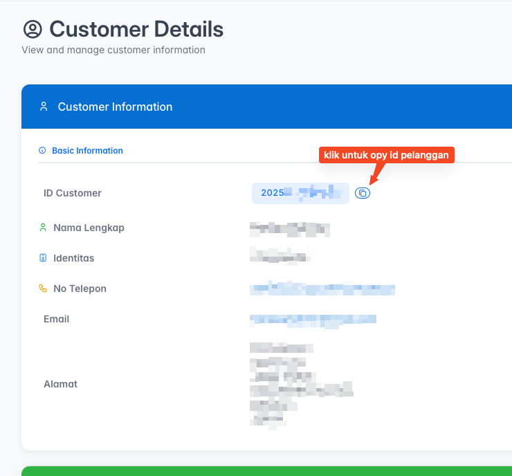Anda dapat menyalin ID Pelanggan dari menu Customers > Dashboard di aplikasi billing Anda