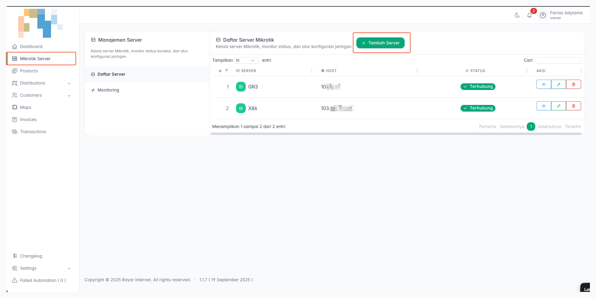 Menambahkan Server Baru di Aplikasi Billing