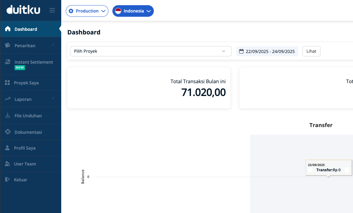 - Kembali ke dasbor Duitku di "Proyek Saya".