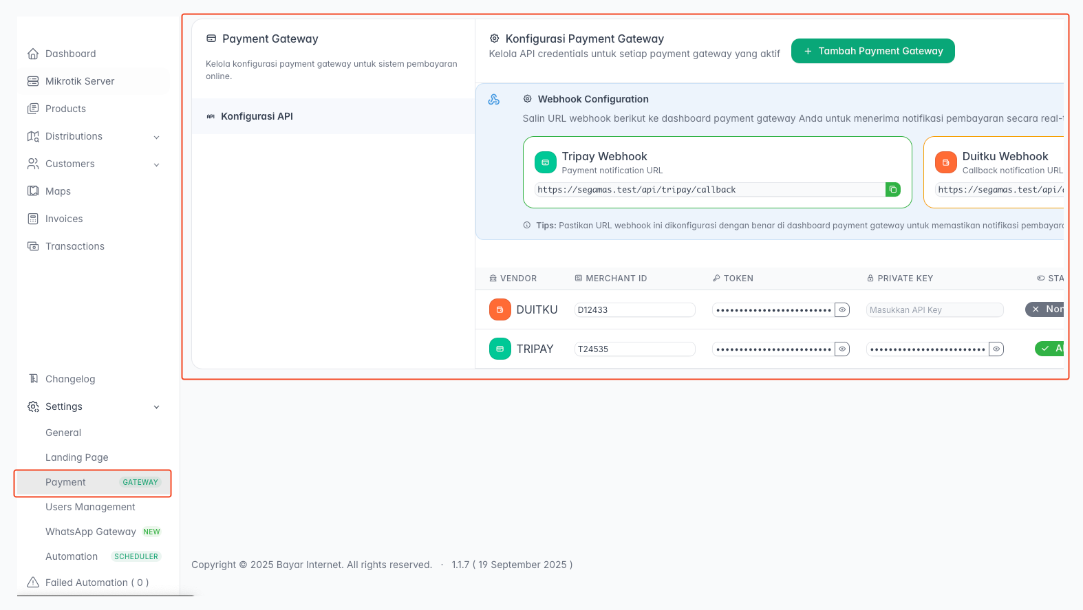 - Klik "Tambah Payment Gateway".
